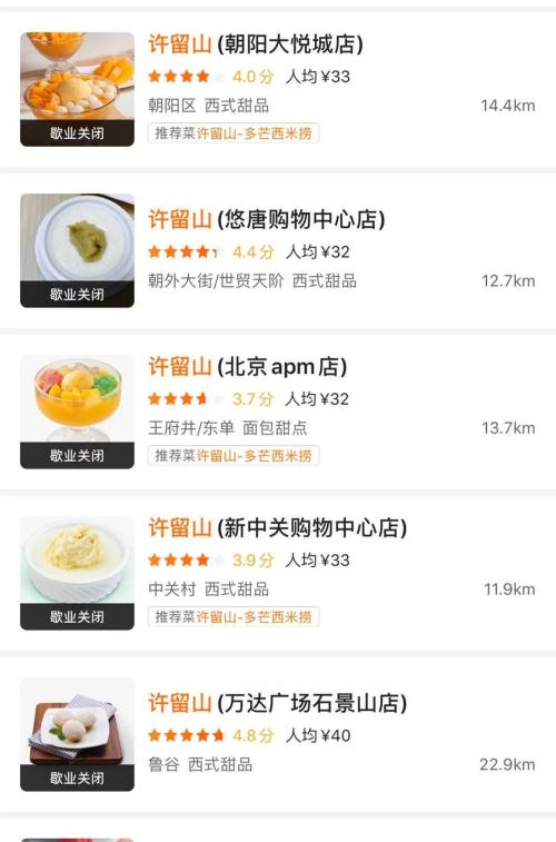 再加上受到疫情的影响,情况堪忧。在美团、饿了么等外卖平台上搜索,北京仅剩2家门店正常营业,其他均处于歇业关闭状态,已经下架。