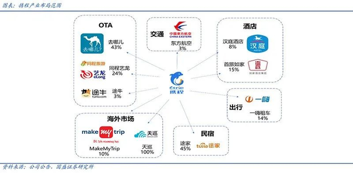 携程还向同程和途牛注资,最终独霸OTA,并在民宿、出行等多领域布局。