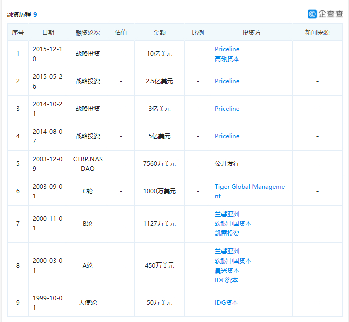 携程融资历程