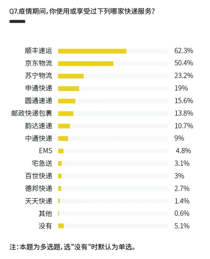 作为线上消费的“护航者”,第三方快递服务也在疫情期间作出了相应调整。