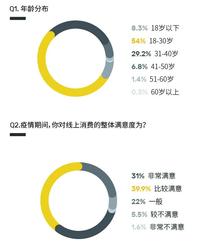 整体上看,将近七成受访者对疫情期间的线上消费感到满意。
