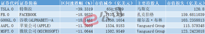 从2月24日以来,包括特斯拉等在内的一系列明星公司也难逃股价下跌的趋势,美国几大科技巨头中,特斯拉下挫约39%,位列跌幅第一;而谷歌因为市值基数较大,总市值蒸发1850亿美元,同时,持股比例达5.58%的创始人谢尔盖·布林的账面损失约103.2亿美元,从全球前十大富豪名单中消失,在福布斯实时富豪排行榜中排名暂列11位。