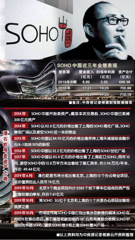 2019年10月,有消息传出,SOHO中国计划至少出售其北京、上海9栋写字楼中的8栋,这8栋优质资产也被外界称为“八大金刚”,交易价格可能高达80亿美元(约624亿港元)。彼时SOHO中国正向潜在买家商谈,首批出售项目价值高达30亿美元。而这个潜在买家正是黑石集团。
