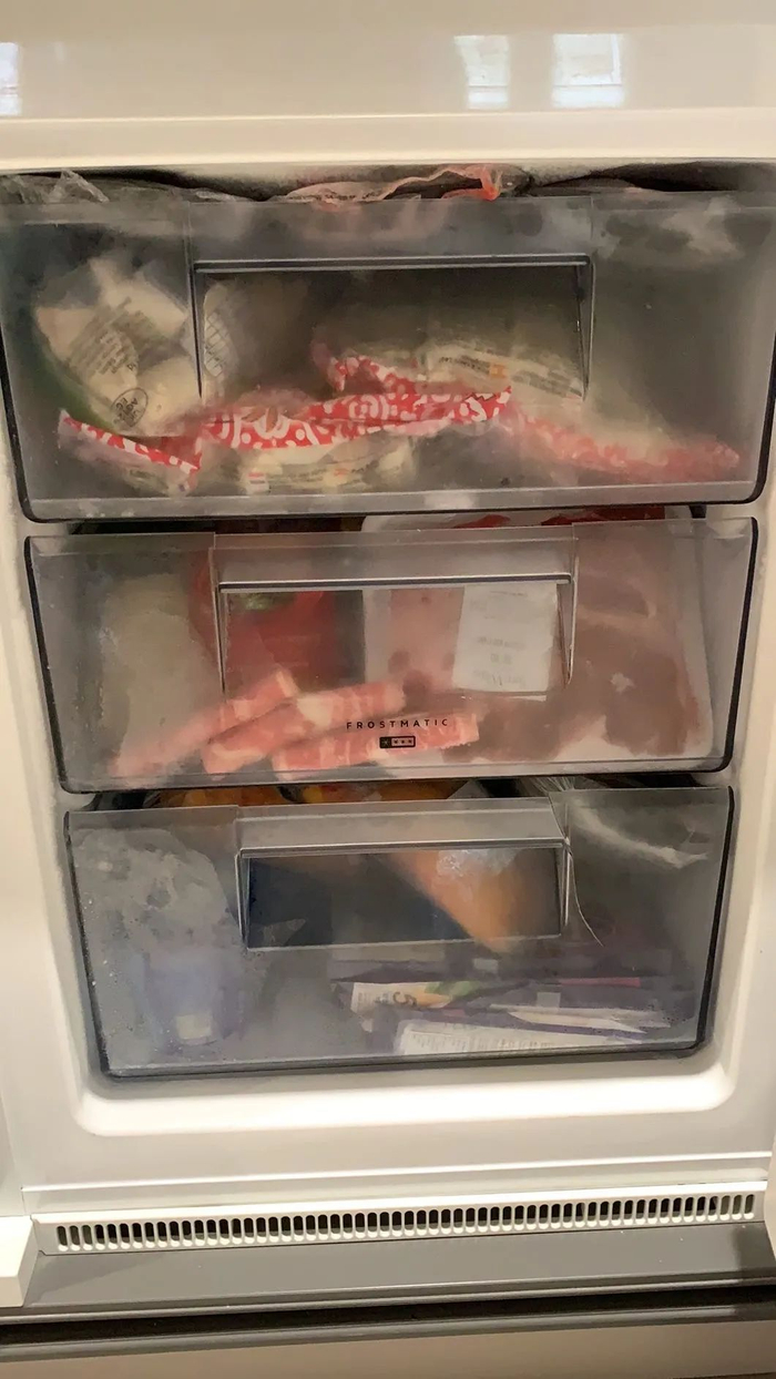 江先生给记者展示的照片显示,冰箱、地板已堆满生活必需的各种物品。尤其是冰箱,塞得满满当当。