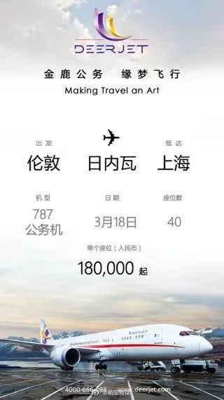 回上海一个座位要18万元?还仅仅是起步价?是的,你没看错,某主打公务飞行的航司“祭出”的归国海报显示,3月18日从伦敦出发,途径日内瓦后抵达上海,座位数为40个,单个座位售价18万元起。