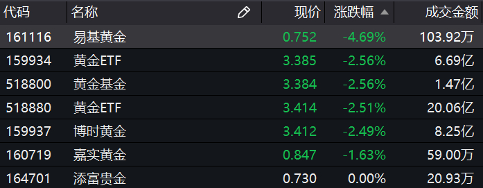 除此之外,作为避险资产的黄金也表现一半,场内黄金主题基金也集体收跌。