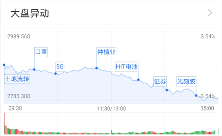 上周五(3月13日)盘后央行宣布降准,今日(3月16日),美联储再度降息。而“利好”叠加,依旧未能改变A股颓势,三大指数高开低走。开盘土地流转概念火爆,同时口罩概念王者归来,领涨大盘。但盘中科技股砸盘,指数翻绿。午后大盘持续低迷,各板块跌幅扩大,沪指失守2800点,创业板指一度跌超6%。