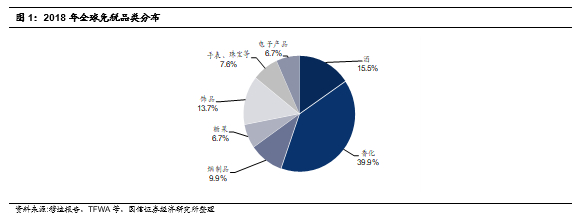 设立免税店国产品展示区,有望推动本国产品与免税渠道共同做大做强。本次文件表示将在免税店设立一定面积的国产商品销售区,换言之国产品业务有望与进口产品同台竞技,获得更多推广机会。结合我们的持续跟踪,此前国产烟酒在免税店售卖其实本质也是通过国产品退税等方式。结合全球免税品类分布(电子产品占比约7%),同时韩国化妆品企业龙头LG和爱茉莉太平洋的崛起也可以看到韩国免税渠道对其成长的重要意义。从这个角度,在国产品退税等政策支持下,未来我国免税产业也会进一步引入国产商品(电子商品、香化产品等),未来随着我国免税产业的蓬勃发展,也在一定程度上为上述国产品的成长提供有利支撑,从而有助于国产品和免税渠道共同做大做强。