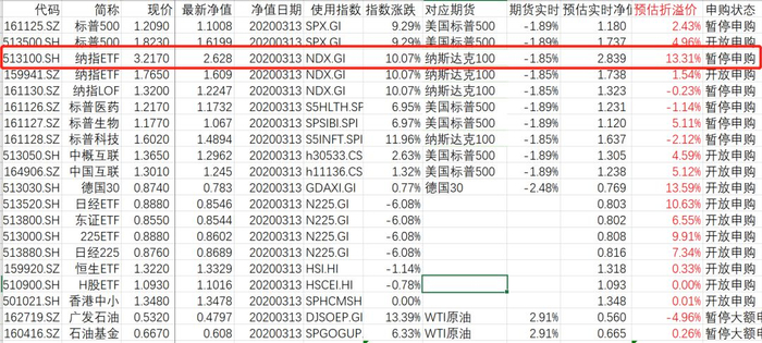所以你目前所有软件上看到的美股QDII折溢价