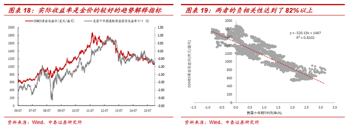 这其实也符合我们一直采用的逻辑框架,即实际收益率决定黄金价格的趋势:黄金作为一种非生息资产,美债的实际收益率是持有黄金的机会成本,美国十年期TIPS收益率可以较好的解释黄金价格的趋势变动。