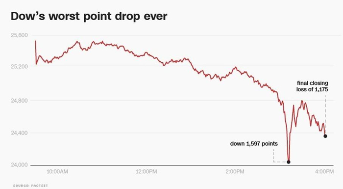 2018年2月5日,道琼斯工业指数当日经历了有史以来最大的单日跌幅,疑似计算机交易引发的骨牌效应下,市场恐慌排山倒海而来,跌的让投资人措手不及。