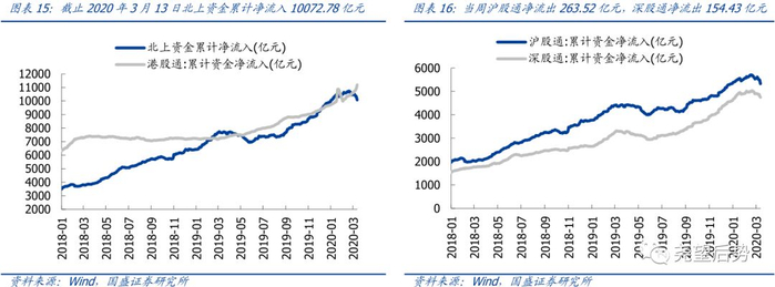 2020年3月13日当周,北上资金累计净流入10072.78亿元,较前周净流出417.95亿元,其中,沪股通净流出263.52亿元,深股通净流出154.43亿元。港股通净流入472.62亿元。