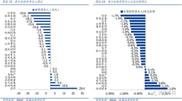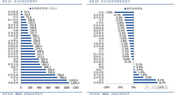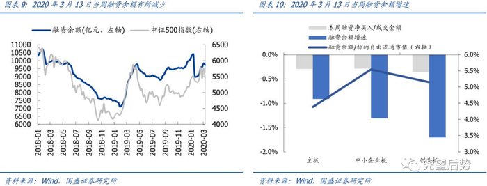 从行业分布来看,2020年3月13日当周,融资余额增速排名前五的行业分别为休闲服务、通信、农林牧渔、电气设备和交通运输;综合、有色金属、食品饮料、汽车和计算机等行业的融资余额增速下滑较多。