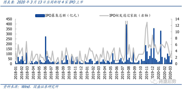 2020年3月13日当周,新增4家IPO上市,首发募集规模合计约为35.5亿元。