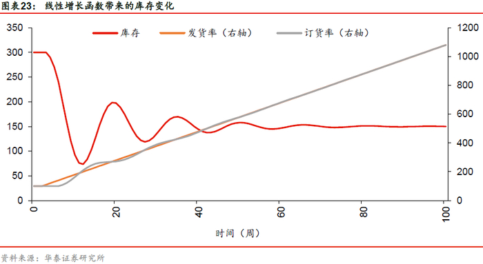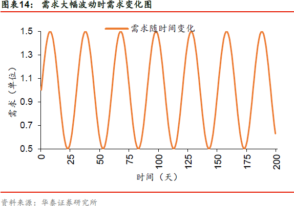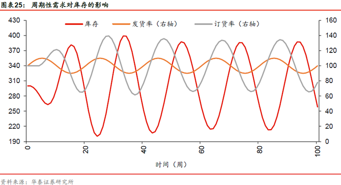 当需求周期性波动时,库存与需求耦合出新的周期;