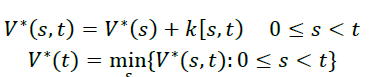 DEL模型迭代求解的向前算法:考虑s*(t)代表0到t时间内最后的进货时间,设s*(t)=s,那么V*(s)+k[s,t)=V*(s,t),找到最优的s需要计算V*(s,t)的最小值。