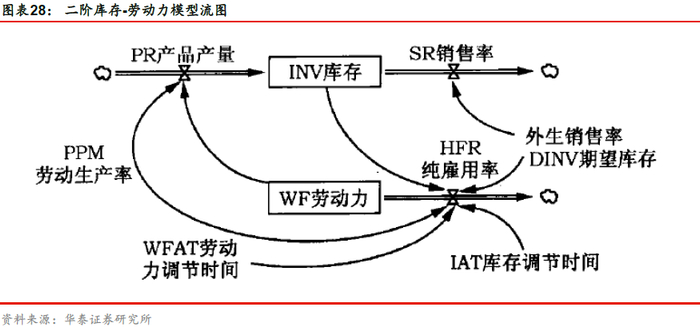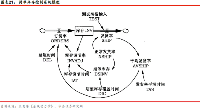 系统动力学是美国麻省理工学院教授福瑞斯特于1956年左右为分析生产管理及库存管理等企业问题而提出的系统仿真方法,其建模过程借助于动力学方程。在系列的第二篇报告《周期趋同现象的动力学系统模型》中我们发现利用动力学方程能够在一定程度上模拟系统的周期同步现象。在库存管理领域,系统动力学建模同样能够很好的模拟库存控制系统各变量的时变关系,这是我们进行周期起源研究的