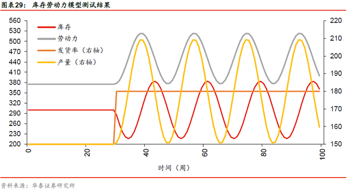 本文关心的是微观个体周期的产生,从两种模型的视角对库存进行了建模,一种是关注成本的优化决策模型,一种是关注系统变化的系统动力学模型。两种模型都是对真实世界的简化,但是各有侧重。在优化决策模型中,模型给出的最优成本决策会使库存具有类周期性,周期性的需求也能够较好的传导至库存,随机性的需求会造成系统扰动,但类周期依然存在。在系统动力学模型中,下游需求的冲击会演变为库存的振荡,周期性需求能够顺畅传导至库存,随机性在传导过程中会衰减。更重要的是,二阶库存-劳动力模型中周期是应对外部冲击后的必然。