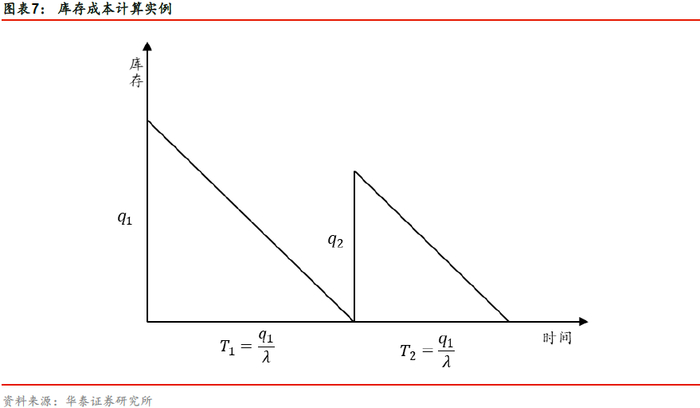 3)库存持有成本h:货物的仓储成本,与货物数量和时间相关。