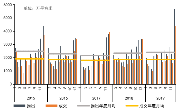 图 2015-2019年300城商办用地推出及成交规划建筑面积