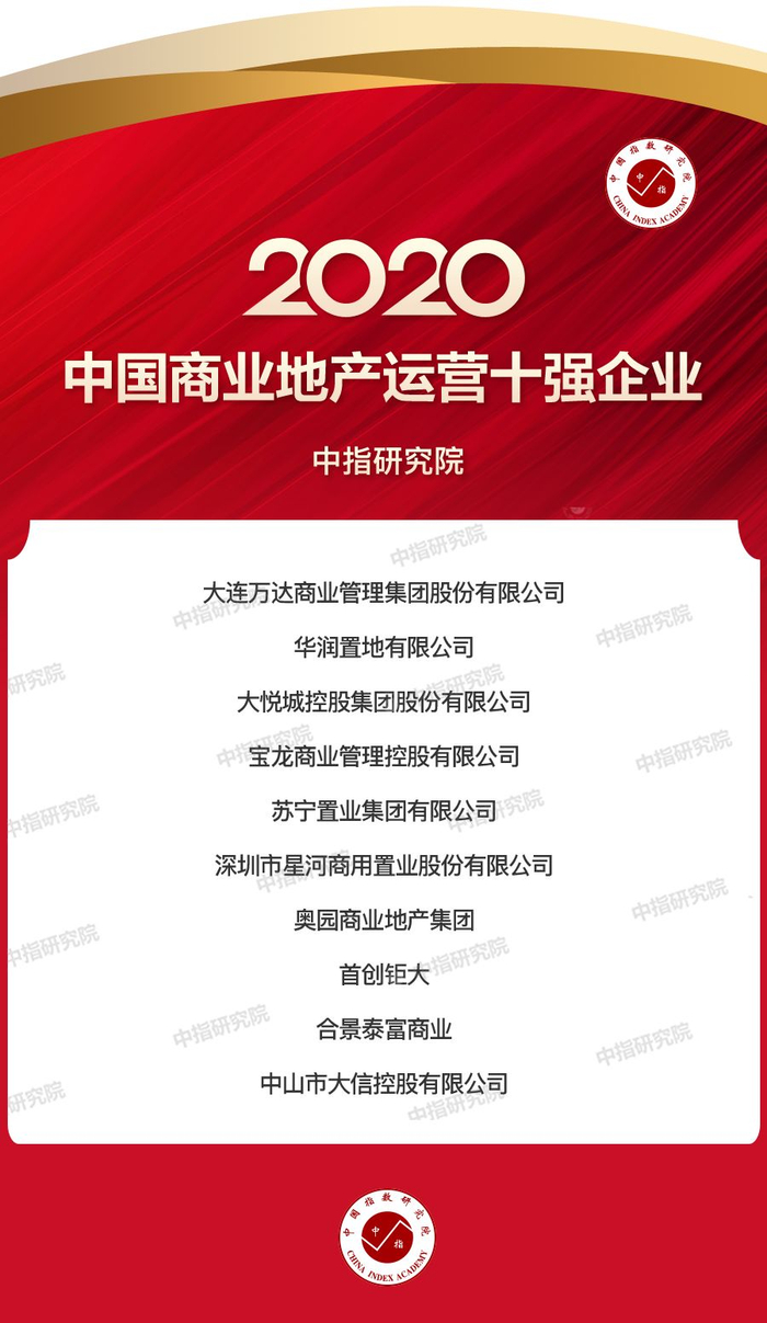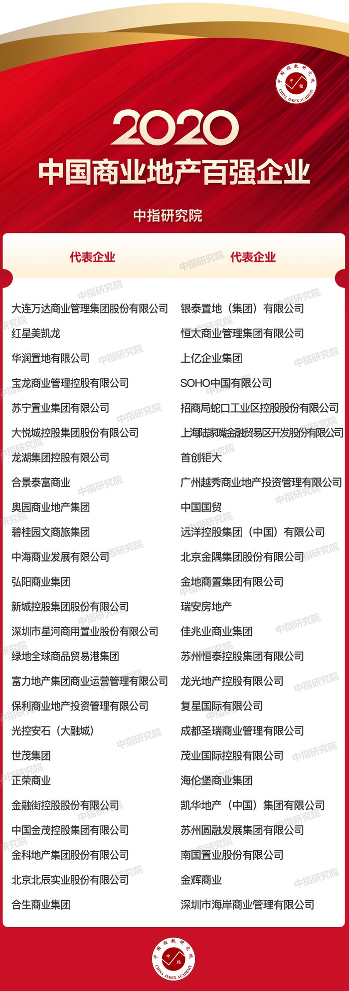 2020年,中指研究院结合在商业地产领域多年的研究积累与数据基础,启动“2020中国商业地产百强企业”研究,旨在发掘行业中综合实力强、运营水平高、成长潜力大的优秀企业群体,鼓励企业理性认识商业地产市场发展现状及规律,紧密跟踪市场变动趋势,在变革中积极创新谋发展,引领行业在新环境下实现持续、稳健发展。