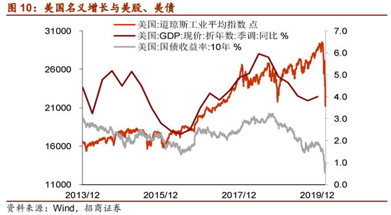 美国股市大跌,债券收益率大幅下降,股债表现预示一季度美国名义 GDP 增速将大幅下降。