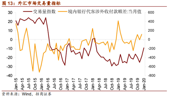 12月、1月中国外汇市场交易量指数均上升。12月涉外收付款顺差规模回升,与交易量指数表现一致。