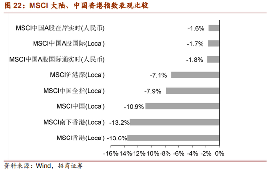 MSCI中国市场指数连续两个月表现好于中国香港指数。