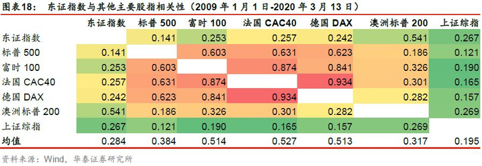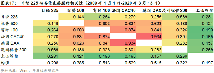 日本股市与其他主要股指相关性低,可有效分散组合风险