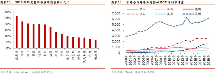 值得一提的是,日本的生物医药产业同样处于世界领先水平,国际制药界权威杂志《Pharm Exec》公布的2019年全球生物制药企业50强中,日本上榜8家位列第二,上榜企业的2018年销售额之和为559亿美元,在全球范围排名第三。高市场占有率来源于日本药企对研发的投入,2019年上榜的日本企业在上一年的研发费用达到销售额的22.1%。同时研发的高投入也加速了日本药企技术的腾飞,2019年日本医疗器械PCT专利申请量达到2630件,仅次于美国,领先第三名将近一倍。这些数据说明,日本在技术层面上或有能力快速开发有效治疗药物和诊疗方案来应对此次疫情。