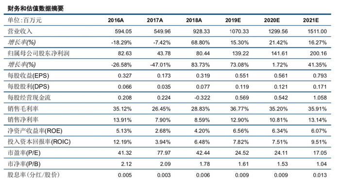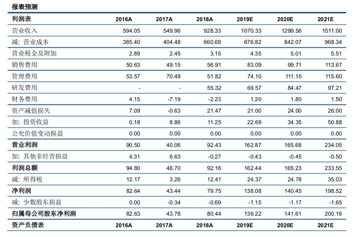 预计公司2019-2021年归母净利润分别达1.39、1.42、2.00亿元,首次覆盖,给与“买入”评级。
