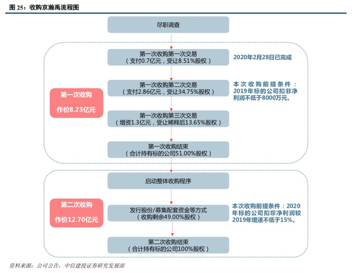 2019年12月,公司发布股权收购合作框架协议公告,拟分步收购京瀚禹100%的股权: