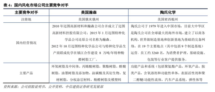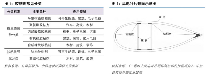 公司下游领域以风电叶片制造企业为主,公司在国内市占率约60%,是国内风叶胶龙头企业。风电叶片用环氧树脂结构胶主要用于风电叶片的合模粘接,风电叶片具有尺寸大、外形复杂和使用环境苛刻的特点,胶粘剂的产品性能将直接影响叶片的运行。
