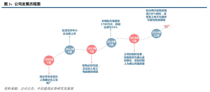 2019年12月,公司公告拟分步收购京瀚禹100%的股权。2020年第一次收购,完成后将持有京瀚禹51%的股权,2021年启动整体收购程序,预计以发行股份购买资产及募集配套资金等方式。京瀚禹主要从事军用电子元器件的检测业务,检测对象主要包括集成电路、晶体晶振、电阻电容电感等。