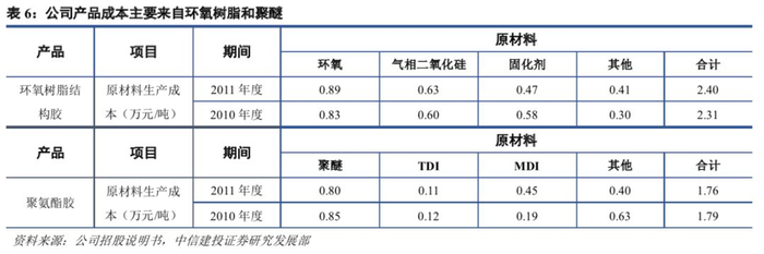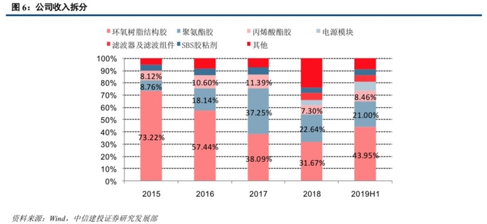 环氧树脂结构胶和聚氨酯胶是公司前两大业务,收入占比分别为44%、21%(2019H1),胶粘剂业务原材料成本占比高达80%,环氧树脂胶的原材料主要是环氧树脂,聚氨酯胶的原材料主要是聚醚,二者在2017和2018年出现了明显的价格上涨,导致公司毛利率下滑。