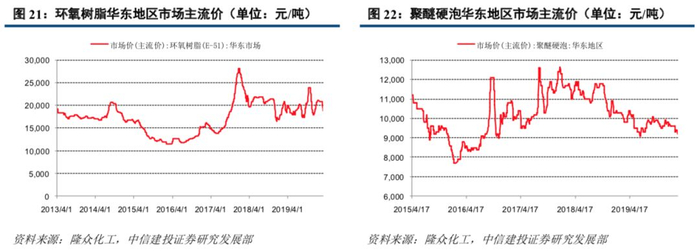 我们判断环氧树脂和聚醚价格的上涨主要是由于环保政策收紧,随着供给侧产能的逐渐出清,环保收紧的边际影响逐渐降低,行业步入稳态。预计未来公司的原材料价格将维持在较低的位置,有利于业绩的释放。