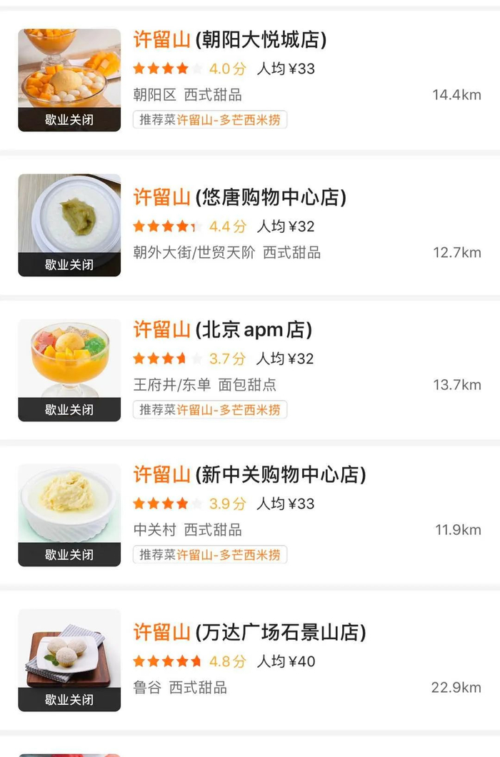 再加上受到疫情的影响,情况堪忧。在美团、饿了么等外卖平台上搜索,北京仅剩2家门店正常营业,其他均处于歇业关闭状态,已经下架。