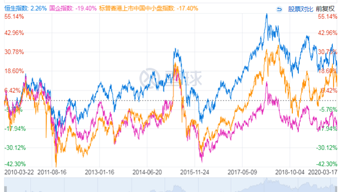 市场上超过5000万港股基金跟踪的指数主要有香港恒生指数(HSI)、恒生中国企业指数(HSCEI)、恒生中国(香港上市)25指数(HSFML25)、标普香港上市中国中小盘精选指数(SPHCMSHP)。以下数据时间为2020年2月。