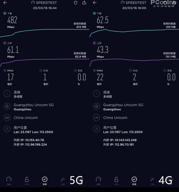 测试手机:S20 Ultra、测试环境:广州天河区