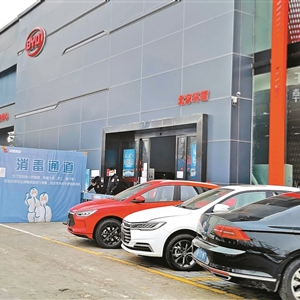 “消毒,保障安全嘛。放心,对人体没害,消毒效果好。要不这么多人,人员聚集也不放心。”比亚迪北京环耀4S店的销售笑着表示。