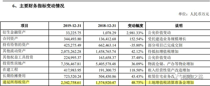 不过,这里万科依靠递延所得税资产项目,隐藏了部分利润:2019年度递延所得税资产相比 2018 年增加了 77 亿,相当于减少了年度利润 77 亿。