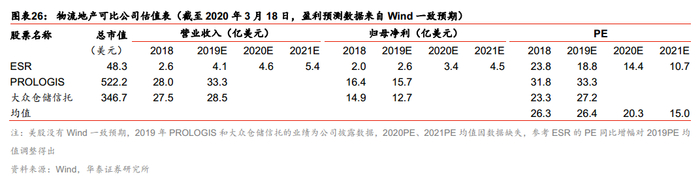 物流地产板块,万科的资产估值可分为两块:普洛斯(GLP)股权以及万纬物流。我们预计普洛斯19-20年扣除公允价值变动下的归母净利分别为7.8、8.3亿美元,2019 和2020年业绩对应PE均值分别为26.4、20.3倍。我们给予普洛斯2020年归母净利(扣除公允价值变动损益)对应的PE以 26倍,即普洛斯市值可达215亿美元,对应1505亿人民币。因此,万科所持有的普洛斯股权预计估值达320亿。参照普洛斯估值,PS估值法下万纬物流估值可达266亿,鉴于普洛斯的品牌溢价以及业态成熟度,我们保守将万纬物流的估值下修至200亿。综上可大致得出,物流板块总估值为520亿。