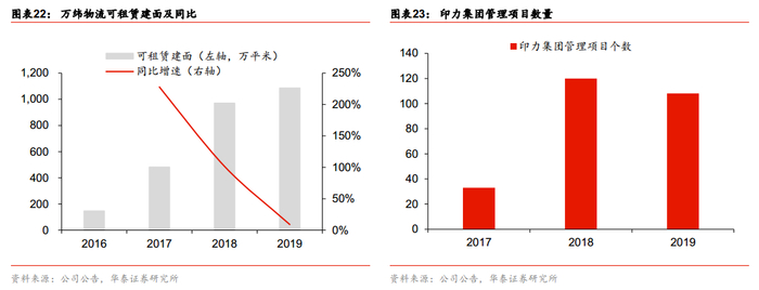 物流地产大举全国化布局接近尾声。2019年底,万纬物流可租赁建面约1086万方,同比+9%,这说明,随着万纬物流覆盖城市数量达44个,万科在物流地产上大举扩张的节奏开始缓和,全国化布局已经完成。商业地产方面,印力集团管理项目个数由18年的120个降至108个,管理规模由18年底的近1000万方降至900万方,说明在这一板块,万科开始精耕细作。