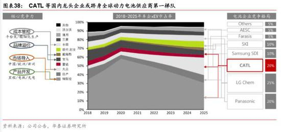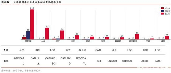 我们预计 2020-2021 年特斯拉的相对优势仍显著,受中国工厂及中国市场带动,2020 年 特斯拉在海外车企中市占率或超过 50%,2021 年后随主流车企的放量,特斯拉市占率或 有所下降。宁德时代已拿到海外主流车企的订单,凭借迭代速度、性价比、需求响应速度 等方面的优势,我们认为 CATL 在 2025 年或有望冲击 20%的海外市场占有率。