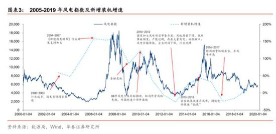 2005-2019 年风电行业复盘。风电行业的发展共分为六个阶段:1)2005 年国内发布《中 华人民共和国可再生能源法》,行业装机同比增速持续提高,在 2008 年初超过 150%;2) 2008-2012 年先后经历金融危机、取消外资风机免税、国家加大项目审查力度等,装机增 速大幅波动;3)2013-2015 年,降低弃风率、调低电价等政策出台,导致行业发生“抢 装”现象;4)2017 年由于监测预警制度,行业进入负增长期;5)2018 年“红六省”变 “红三省”,弃风改善促进行业进入复苏期;6)2019 年行业持续抢装,风机价格进入上 涨区间。