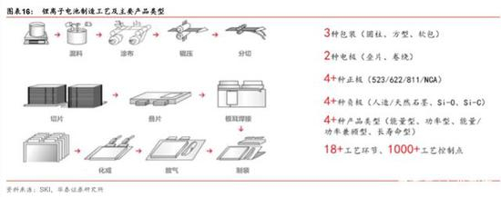 电池环节制造工艺流程长,技术和制造是护城河的重要组成部分。电池产品 2017-2019 年随价格下行盈利能力大幅下滑,但因此对其下现在已沦为同质化标准品的结论还为时尚 早。电池的生产工艺流程多、工艺控制难度大、技术仍处于快速迭代,均构筑起电池厂商 的护城河,光靠资本开支不一定能弯道超车。我们认为制造工艺或是国内宁德时代高市占 率、海外主流动力电池厂商仅剩 3 家(松下、LG 化学、三星 SDI)的主要原因。