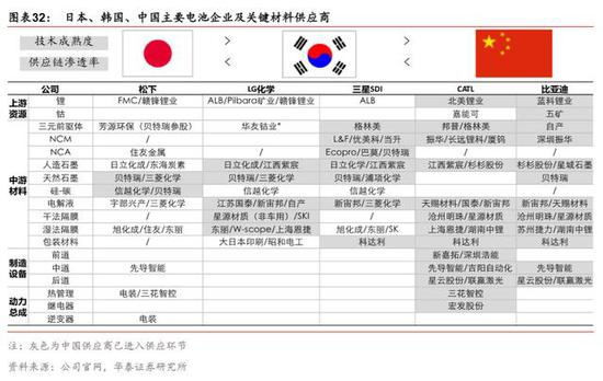 国内材料企业中,负极、电解液在海外龙头客户中供应占比较高,相较于海外公司,璞泰 来、贝特瑞、新宙邦等公司具备客户、规模、资源优势。随着我国新能源汽车行业规模快 速提升,动力电池和湿法隔膜环节实力亦水涨船高。从全球化带来的业绩弹性角度看,目 前国产化率较低的湿法隔膜和加工费波动较小的正极材料环节或有更高的增量发展空间。