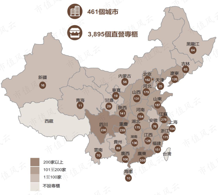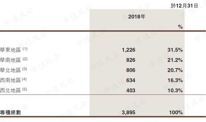 截至2018年末,五谷磨房拥有的直营专柜总数高达3895个,其中三分之一分布在华东地区。