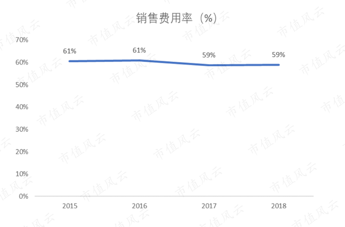 2015-2018年,五谷磨房的销售费用率一直维持在60%以上。