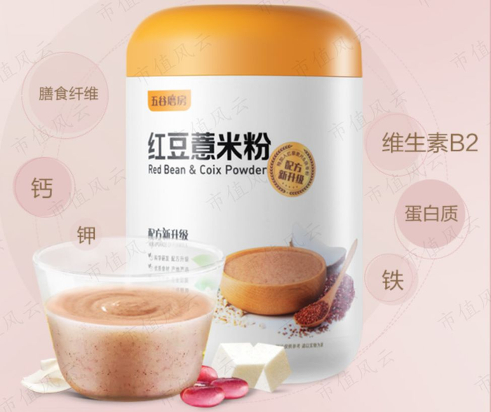 对需要补血、养颜的爱美女士,五谷磨房则专门推出红豆薏米粉,里面富含维生素B2、钾等。